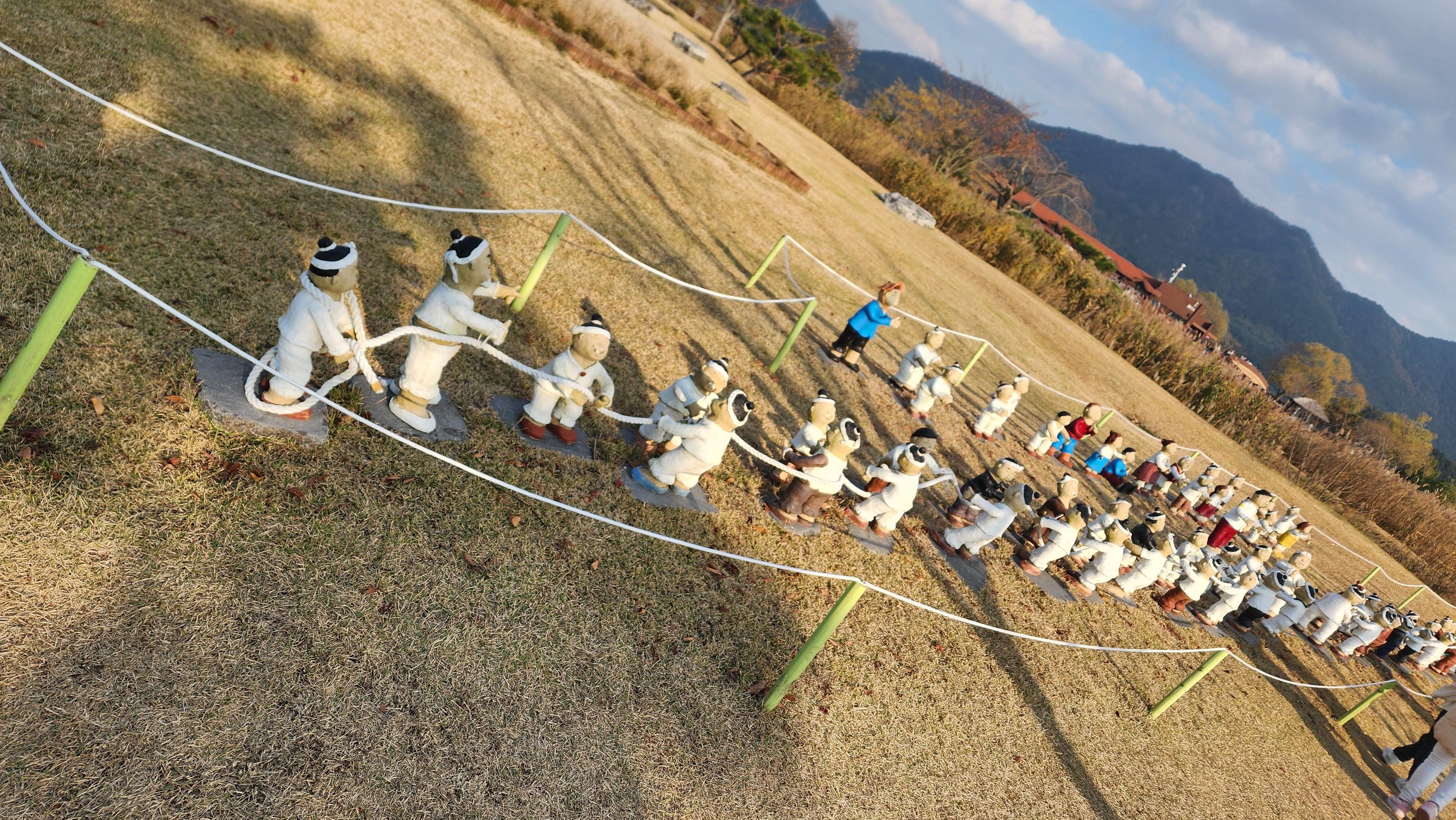 입구에는 순천만 용줄다리기라는 전통적인 민속놀이를 작품으로 나타냈습니다.