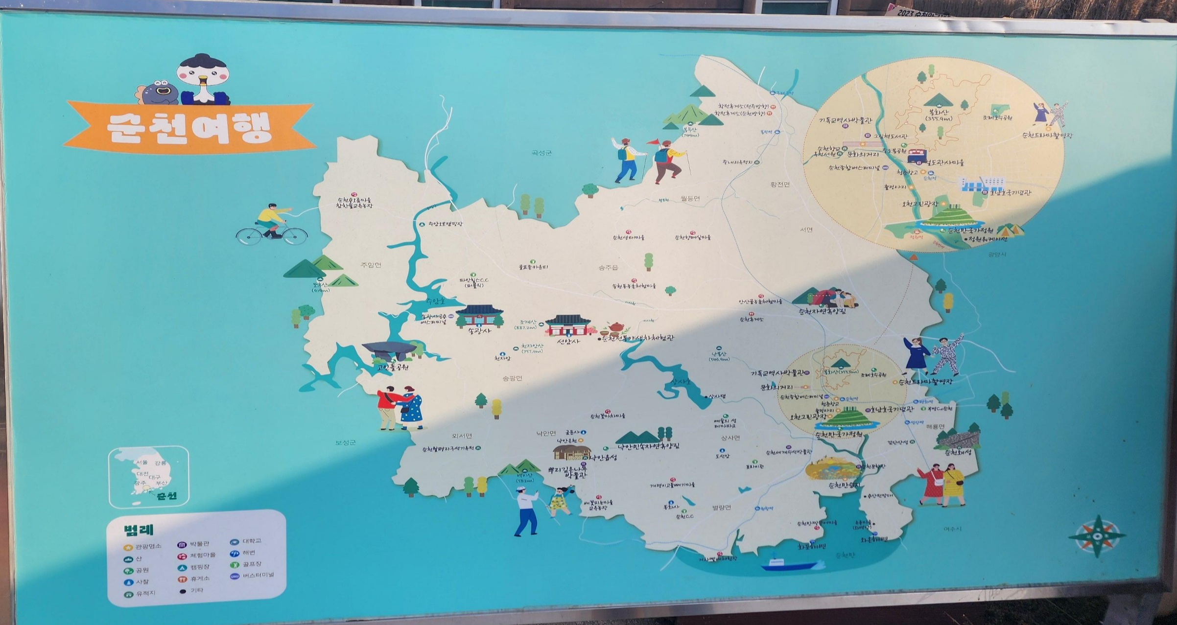 밥을 먹고 나와보니 순천여행 지도가 서개되어있습니다.