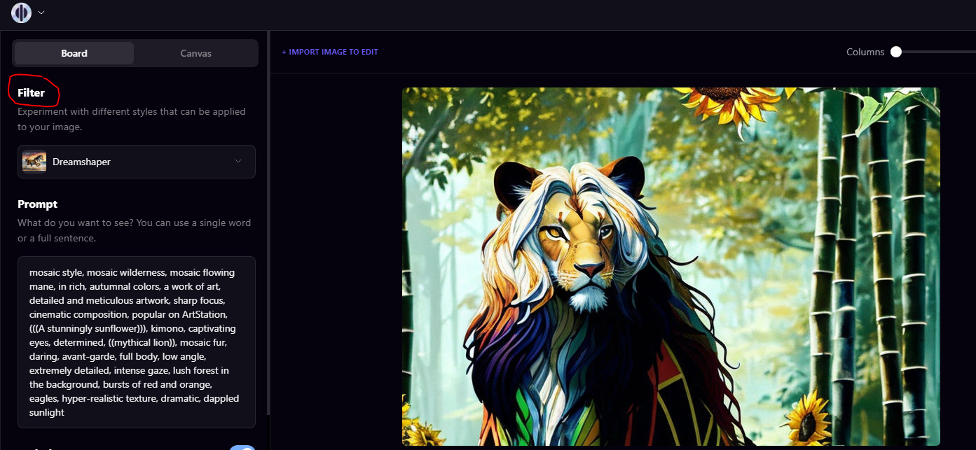 Filter를 변경하면 다른 작품을 생성할 수 있습니다.