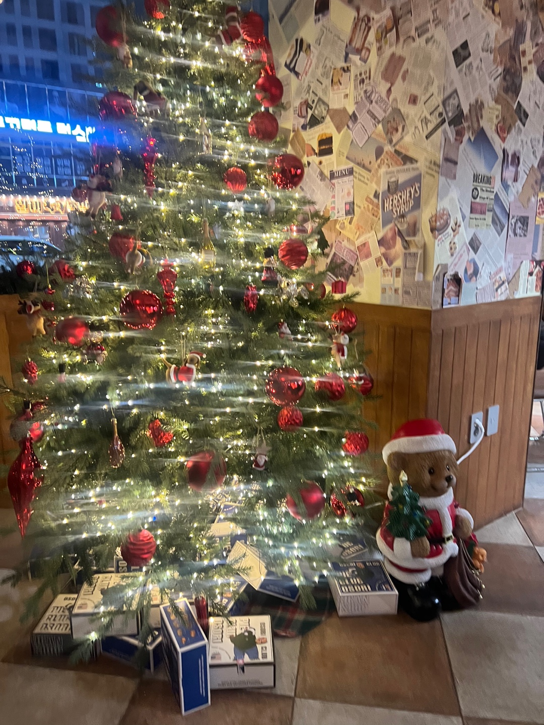 분위기가 좋으며 크리스마스트리가 있는 오소리파이클럽을 검색했습니다.