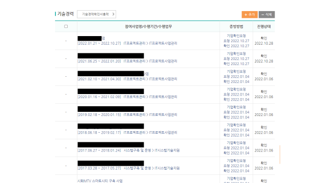 공공기관 등 사업관리로 들어갈 때 경력이 중요하기 때문에 한번 해두시면 편한 서비스입니다.