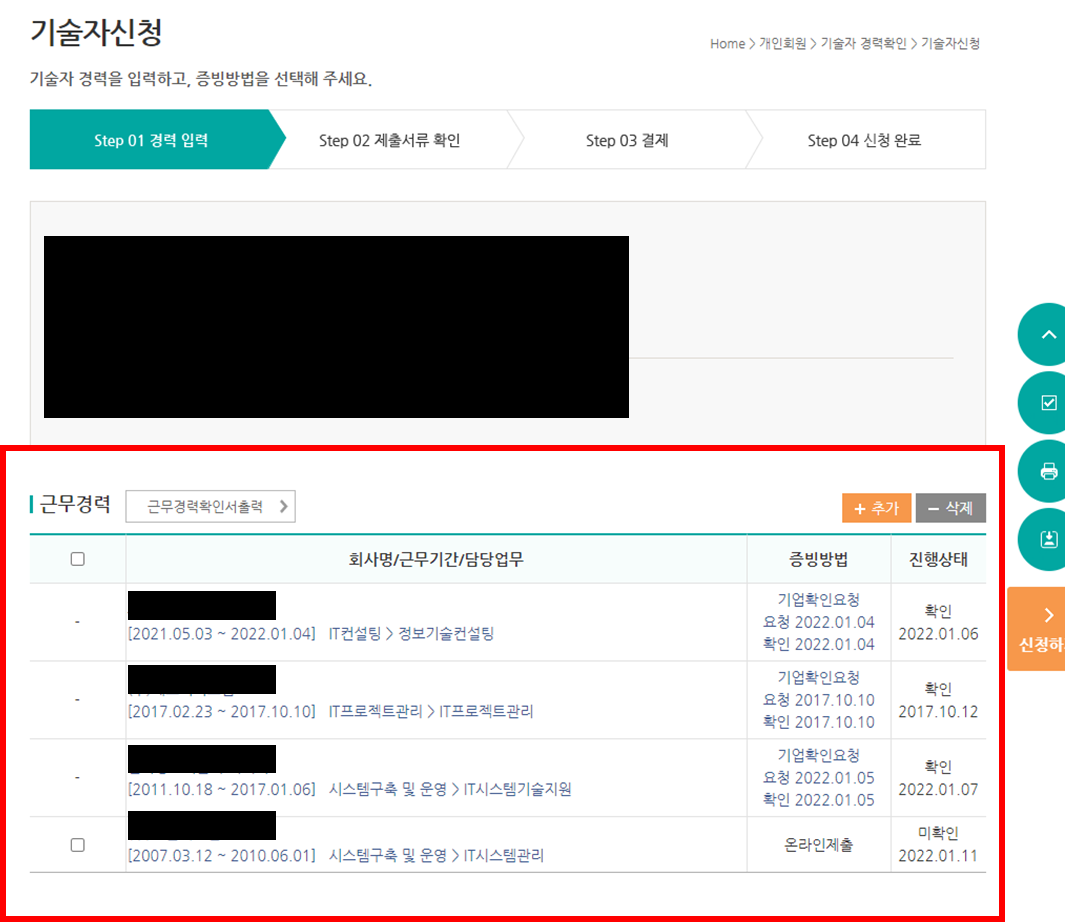 소프트웨어 기술자 신청을 하여 IT인들이 경력관리하기 쉬운 서비스를 제공합니다.