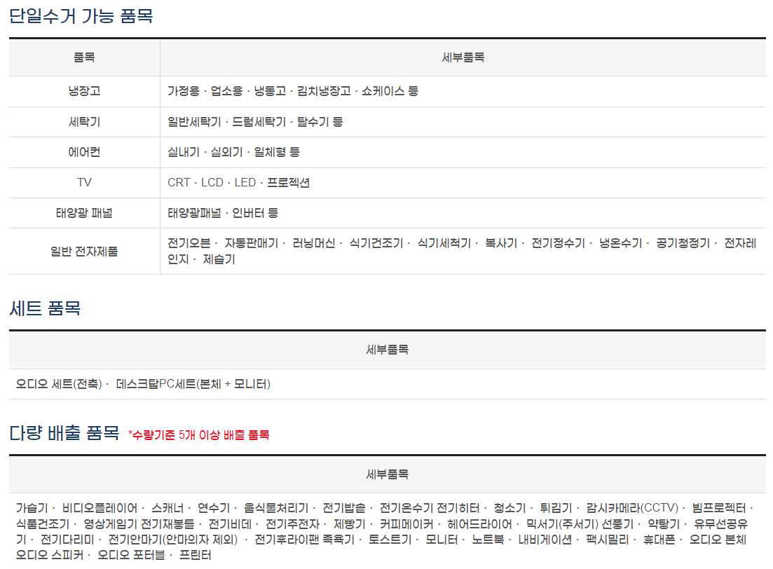 다량 배출 품목의 소형 가전 등은 5개 이상을 모아야 배출이 가능합니다.