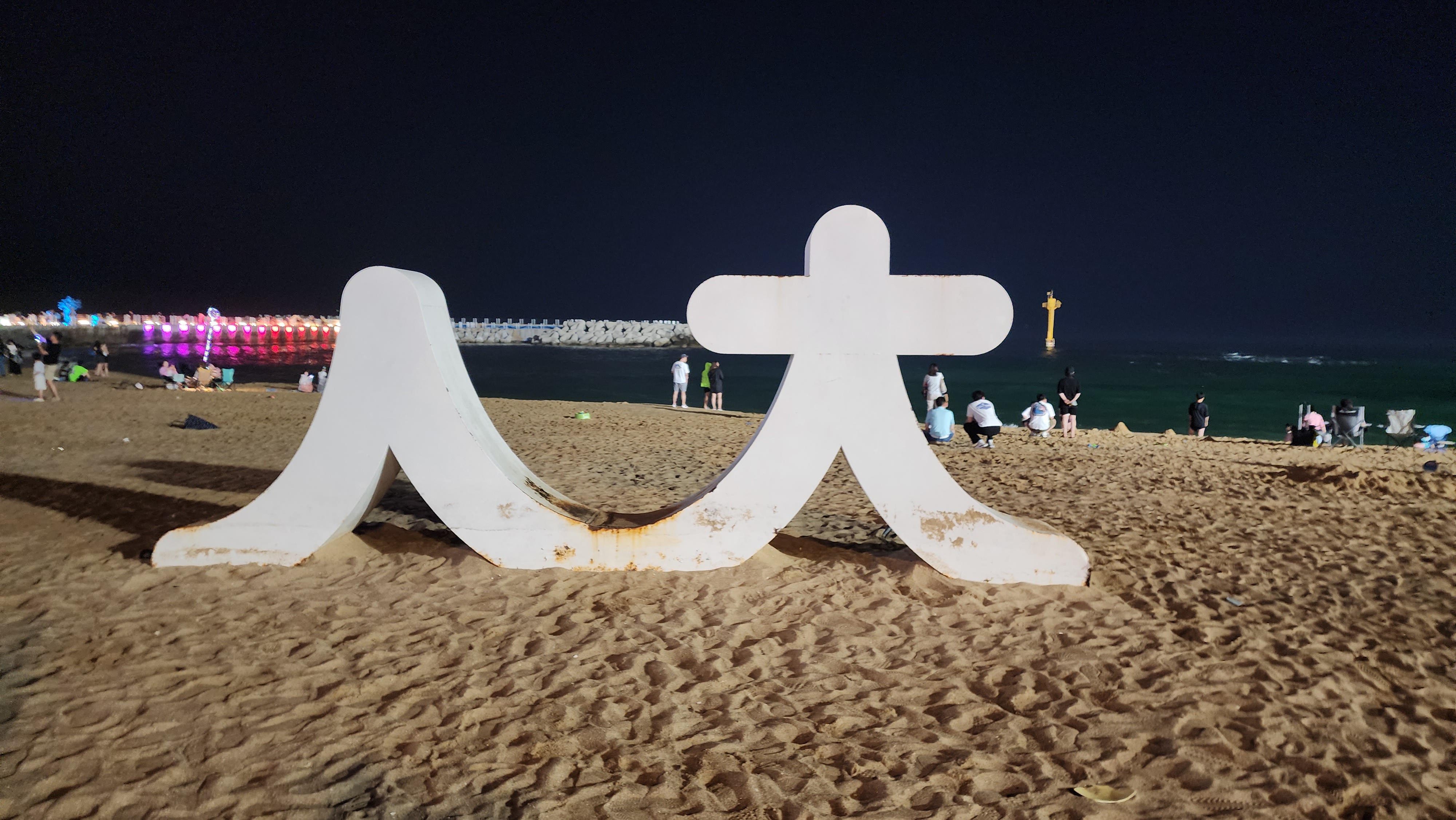 속초 해수욕장에는 이렇게 '속초아이', 'ㅅㅊ' 등의 랜드마크로 보이는 건물들이 있습니다.