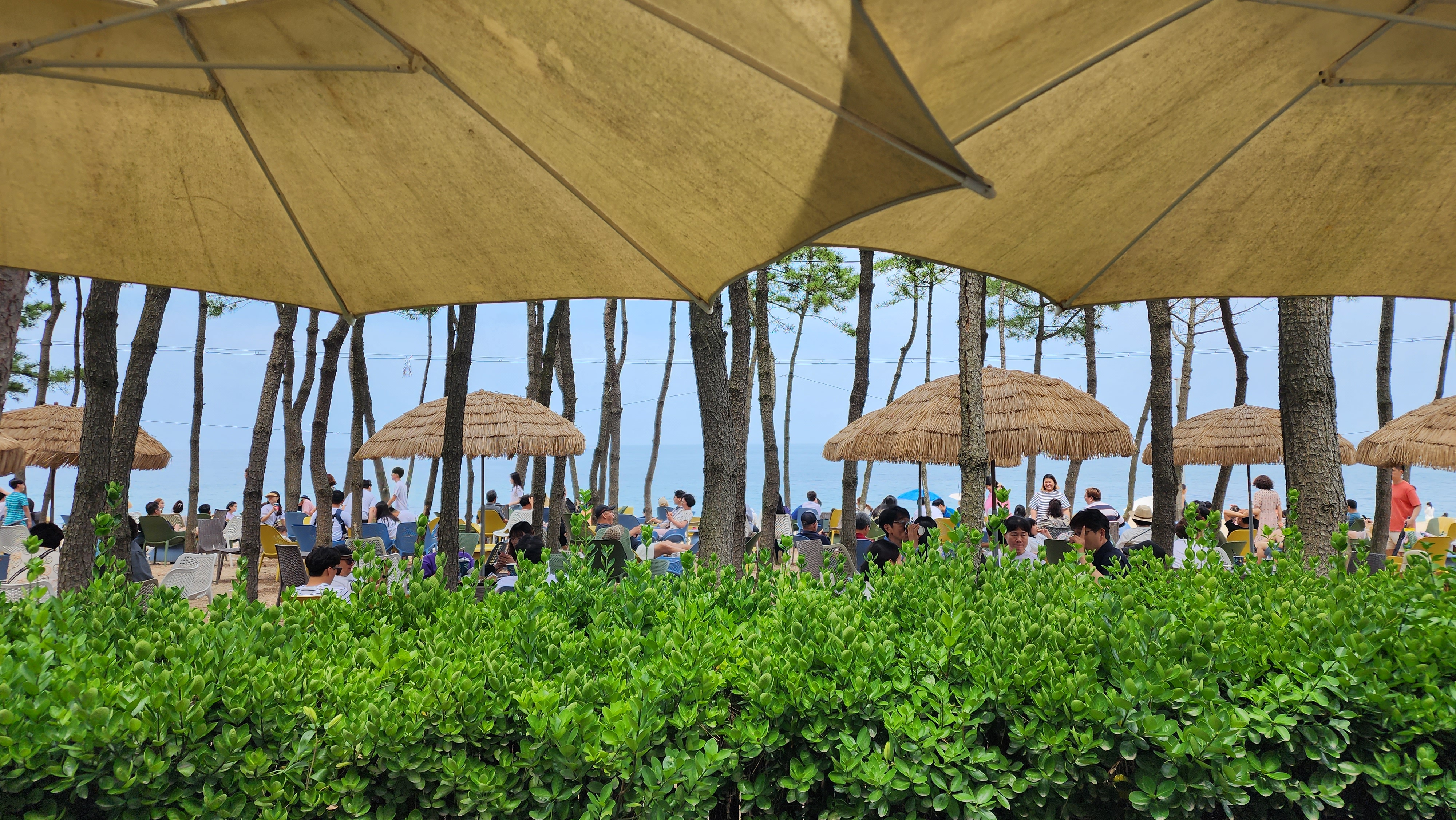 주차장도 엄청 커서 자리 없나 걱정했는데, 해변가에 여유롭게 앉을 수 있는 자리가 엄청 많습니다.