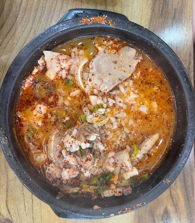 아바이순대국밥에 순대는 3~4개 정도 들어가고, 다른 고기들이 많았습니다.