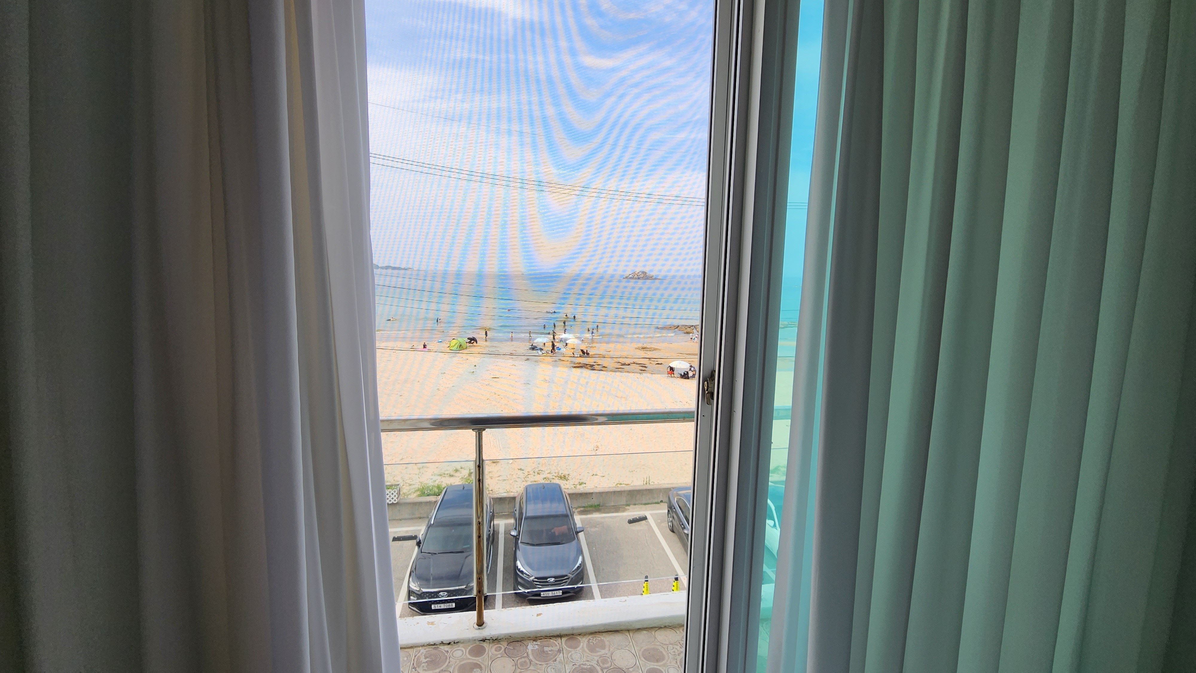 바로 앞에 속초 해수욕장이 있어서 바다수영하기 아주 좋은 위치에 있습니다. 숙소 앞에 모래를 터는 물도 있어서 편했습니다.