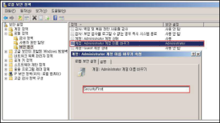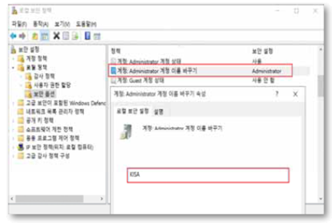 Step 2) "계정: Administrator 계정 이름 바꾸기"를 유추하기 어려운 계정 이름으로 변경